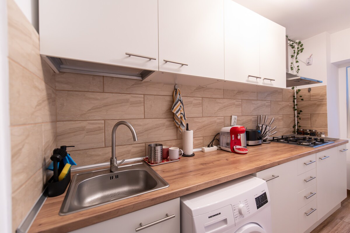 Beliggende i nærheten av Piata Muncii (ti minutters gange), noen kvartaler unna Decebal Bdv og nærliggende Unirii Square, kan leiligheten vår med to rom være det rette alternativet for oppholdet ditt i den nydelige byen vår. Leiligheten vår kan gi deg: - 1 soverom med én dobbeltseng; - 1 stue med 1 sovesofa - TV-kabel (Netflix tilgjengelig på smart-TV), gratis TRÅDLØST NETTVERK, A/C; - et fullt utstyrt kjøkken, vaskemaskin, strykejern, strykebrett og hårføner. Vi er mer enn glade for å være en del av reisen din.