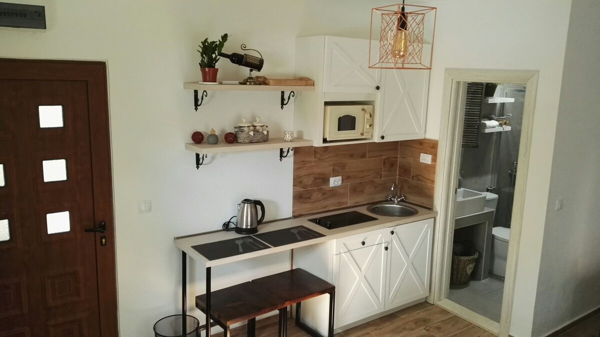 The Cozy Studio with super speed WiFi is equipped with a double bed, bathroom, kitchenette and dinning area. The size of apartment is 23m2 with the 10m2 of terrace and it is situated on the ground floor, 20m from the beach. The beach is equipped with sun loungers they are free of charge for our guests. The parking place is free of charge .If you need good private parking near to as apartment it cost 7 eur per day
