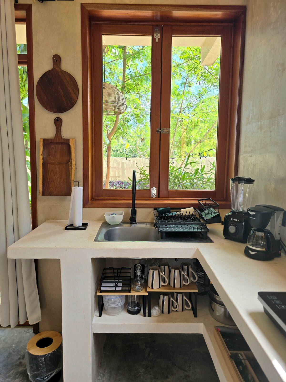 Få kontakt med naturen igjen på dette uforglemmelige stedet på kanten av Laguna Bacalars Cenote Negro. Studioet, også kalt «The Burrow», ligger i nærheten av vannkanten, komplett med aircondition, kingsize-seng, kjøkken med lite kjøleskap, to brennerkomfyr og brødristerovn, vannfilter med omvendt osmose, stort skrivebord med høyhastighetsinternett og delt bruk av bryggen (og kajakker/SUP). Perfekt for en avslappende ferie og/eller jobb fra paradis!