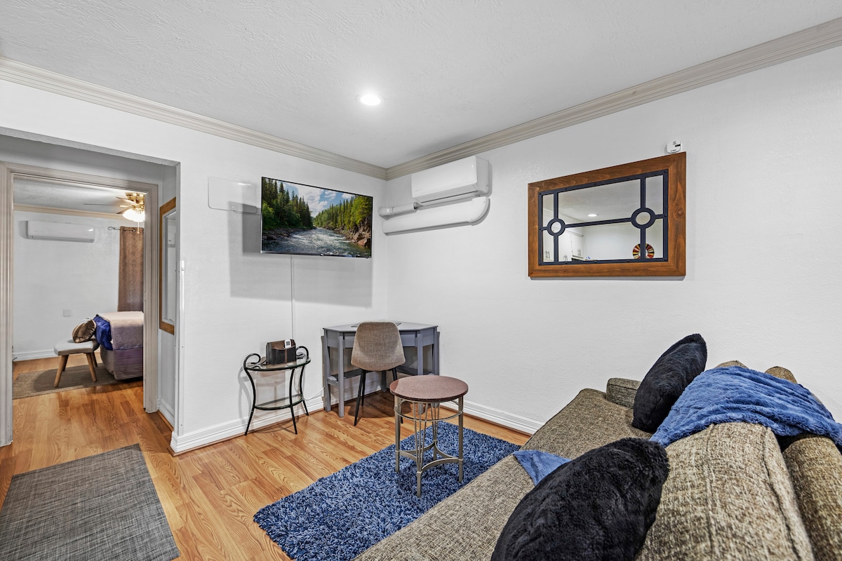 Tranquil top floor studio with skyline views in a prime central location. Bright, quiet, and intentionally designed for rest and ease. Wake up to sunrise from the king bed and unwind in a calm, elevated space above the city. With over 300 stays, guests consistently mention the comfort, cleanliness, and how relaxed they feel here. Thoughtful hosting and a smooth, reliable stay. Secure parking included, with easy access to Downtown and the Heights.