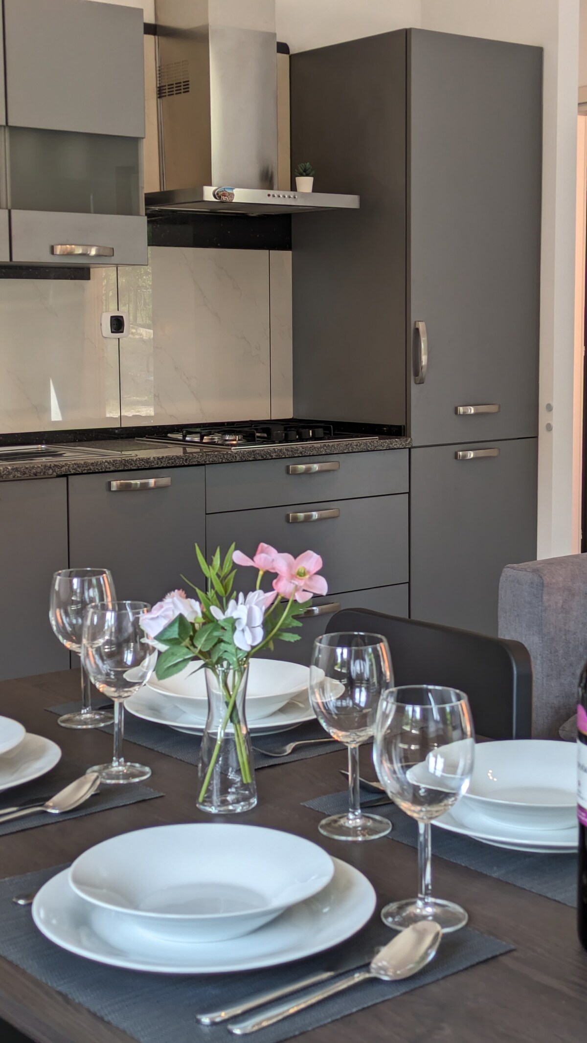 En romslig, minimalistisk leilighet med middelhavspreg. Egen inngang, gratis parkering og en stor hage. En perfekt base å komme til mens du utforsker og nyter alt regionen vår har å by på. Leiligheten har alle nødvendigheter og mer til, men du kan alltid spørre hvis du trenger noe spesielt, så prøver vi å ordne det. Vi har tre sjenerte katter og én svært entusiastisk hund på denne eiendommen, så husk at du er gjesten deres. Kjæledyr og barn er velkomne, men bør alltid ha tilsyn.