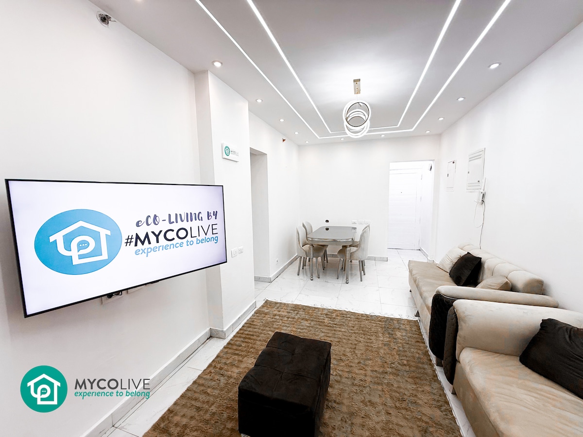 More options in MYCOlive App. MYCOlive 2 Bedrooms apartment with 1.5 bathrooms in the heart of Cairo! - Zamalek in 2 Minutes just one stop away by metro - Maspero Metro Station at your doorstep (Line 3). - Downtown Hub short walk or 5-minute ride to Tahrir Square and the Egyptian Museum. - Royal Carriages Museum 100m away - Parking right under the building - Security: The building features 24/7 security - Big patio and a balcony Coffee machine, microwave, kettle, Smart Tv, Netflix, Fast Wifi.