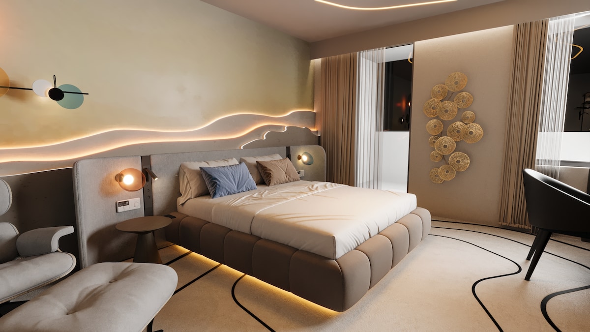 Komfortabel, luksuriøs dupleksleilighet med to soverom og sentral beliggenhet med klimaanlegg, alle kjøkkenredskaper med amerikansk kjøkken, to bad, én balkong og terrasse, med heis, overvåkningskamera. Det er fem minutters gange til det unike naturlige underverket i Lara, hvor Düden-te strømmer ut i havet. Det ligger i nærheten av havet, strendene, flyplassen, alle markeder, sykehus, markedsplasser, apotek, banker, alle slags restauranter og kjøpesentre.