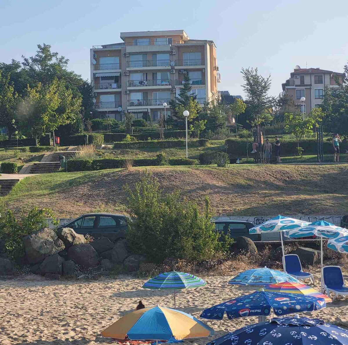Practical and nice apartment. One bedroom, livingroom, kitchen and bathroom. There is one double bed in the bedroom, nightstand og closets. The livingroom have a nice sleeping couch with room for two people. 100m to beach. Nice area just outside sunny beach sentrum. The facility has security and reception. 2 large swimmingpools and one children pool. Perfect for families, free sunbeads. There is also a restaurant. free wifi I have also 3 more apartments in the same buildning.