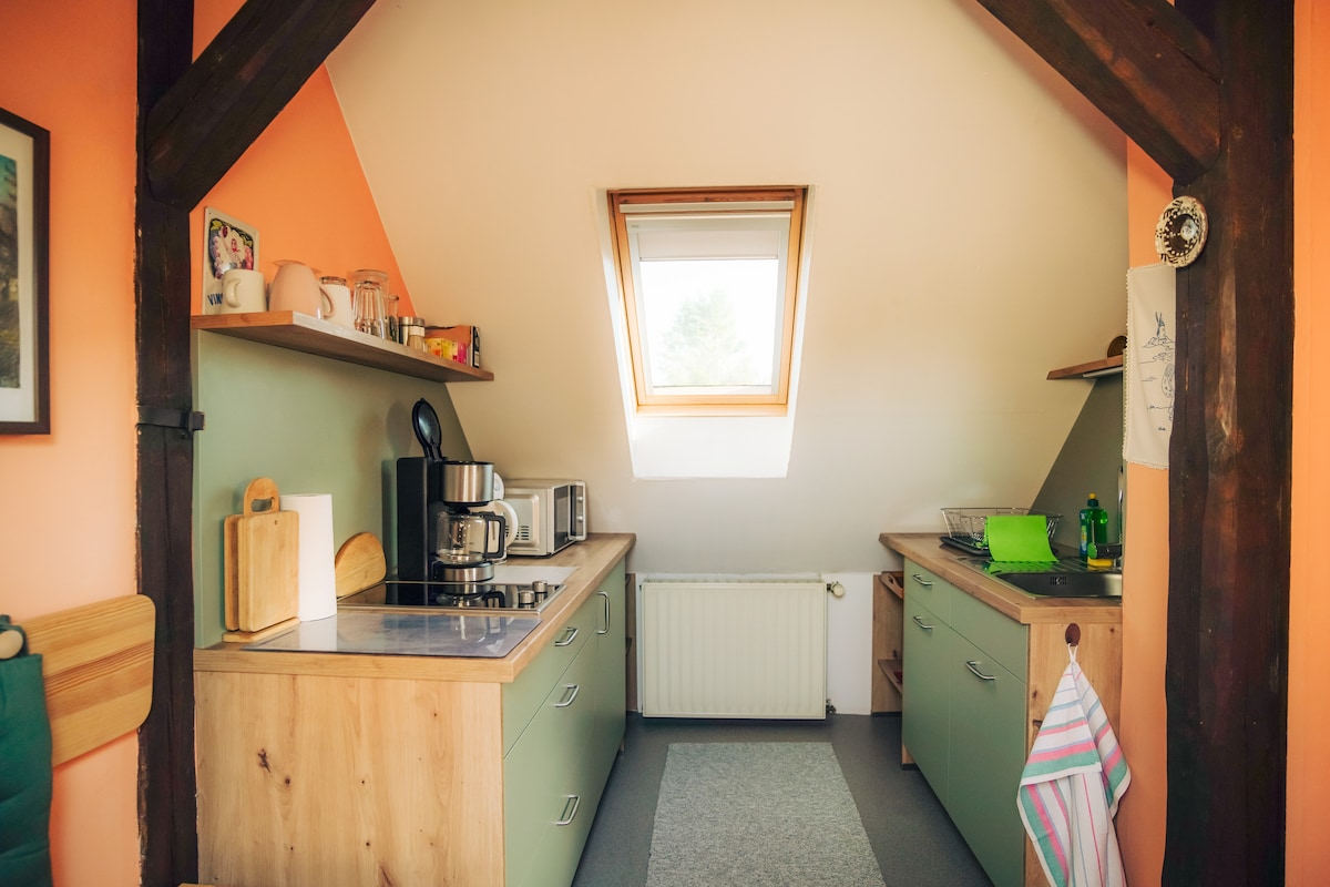 Ca. 40 kvm stor, ren og lys leilighet med kjøkkenkrok, stue og separat soveplass. Veldig fint, lyst bad med dusj og toalett og integrert 2-manns badstue (Klafs). Ideell for avslapping etter turer i den kalde årstiden. Leiligheten ligger i tredje etasje og har egen inngang. Utleierne bor i samme hus. Leiligheten har en låst parkeringsplass. Sykler kan trygt parkeres på gården. Hippe omgivelser.