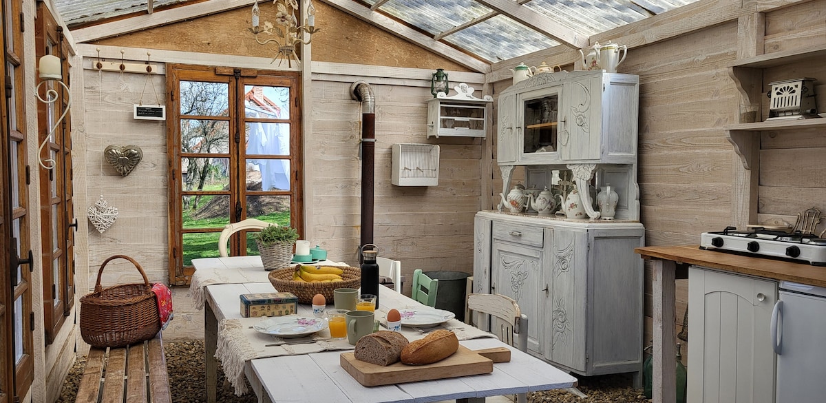 Flykt til den fortryllende omfavnelsen av La Petite Roulotte, hvor det moderne livets virksomhet svinner bort. Den tradisjonelle gjeterhytten tilbyr en harmonisk blanding av gammeldags sjarm og moderne bekvemmeligheter for de som lengter etter romantikken ved camping og en tid da livet var enkelt. Vær oppmerksom på at vi ikke kan ta imot små barn på grunn av nærheten til elven.