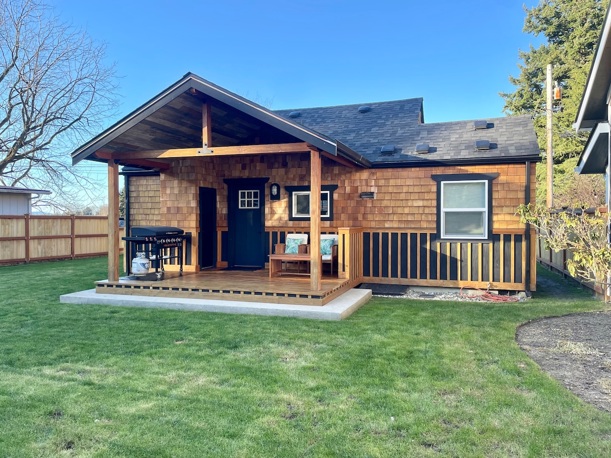 Kom deg bort til den sjarmerende hytta vår i Bow i Washington, det perfekte feriestedet for par som ønsker fred og natur. Denne frittstående oasen med ett soverom har en koselig seng med fransk sengetøy, et badekar og en privat spisestue. Vandre gjennom frodige hager og utforsk 13 hektar fredelig land med trær, blomster og dyreliv. Hver detalj er nøye utformet for å gi et komfortabelt, uforglemmelig opphold, og lar deg nyte roen og skjønnheten i det omkringliggende landskapet.