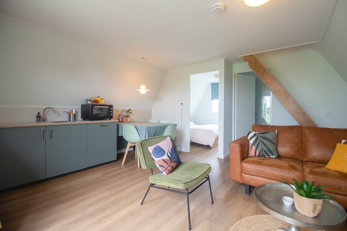I utkanten av den koselige Boekelo ligger denne romslige loftsleiligheten. Den gamle høylåven til denne gårdshuset er forvandlet til et herlig lyst åpent rom med eget kjøkken, bad og separat soveplass. Beliggende langs ulike sykkel- og turstier, og med golfbanen «Spielehof» rett rundt hjørnet, men også innen 20 minutter fra sentrum av Enschede og Hengelo. Kort sagt, et nydelig rolig sted for mange aktiviteter.