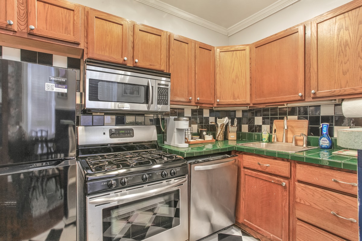 Start ditt Big Easy-eventyr i vårt vakkert innredede toppleilighet med to soverom! Beliggende direkte på New Orleans' verdensberømte Magazine Street, er du bare noen skritt unna noen av de beste restaurantene og butikkene i byen! Du vil raskt oppdage hvorfor denne delen av byen er en favoritt! Hell favorittdrinken din og slapp av i den slående hvite cabanaen i den velstelte bakgården vår. Hvit-på-svart-på-hvit-temaet fortsetter inne i dette elegante hjemmet i andre etasje, helt til den overbygde balkongen.