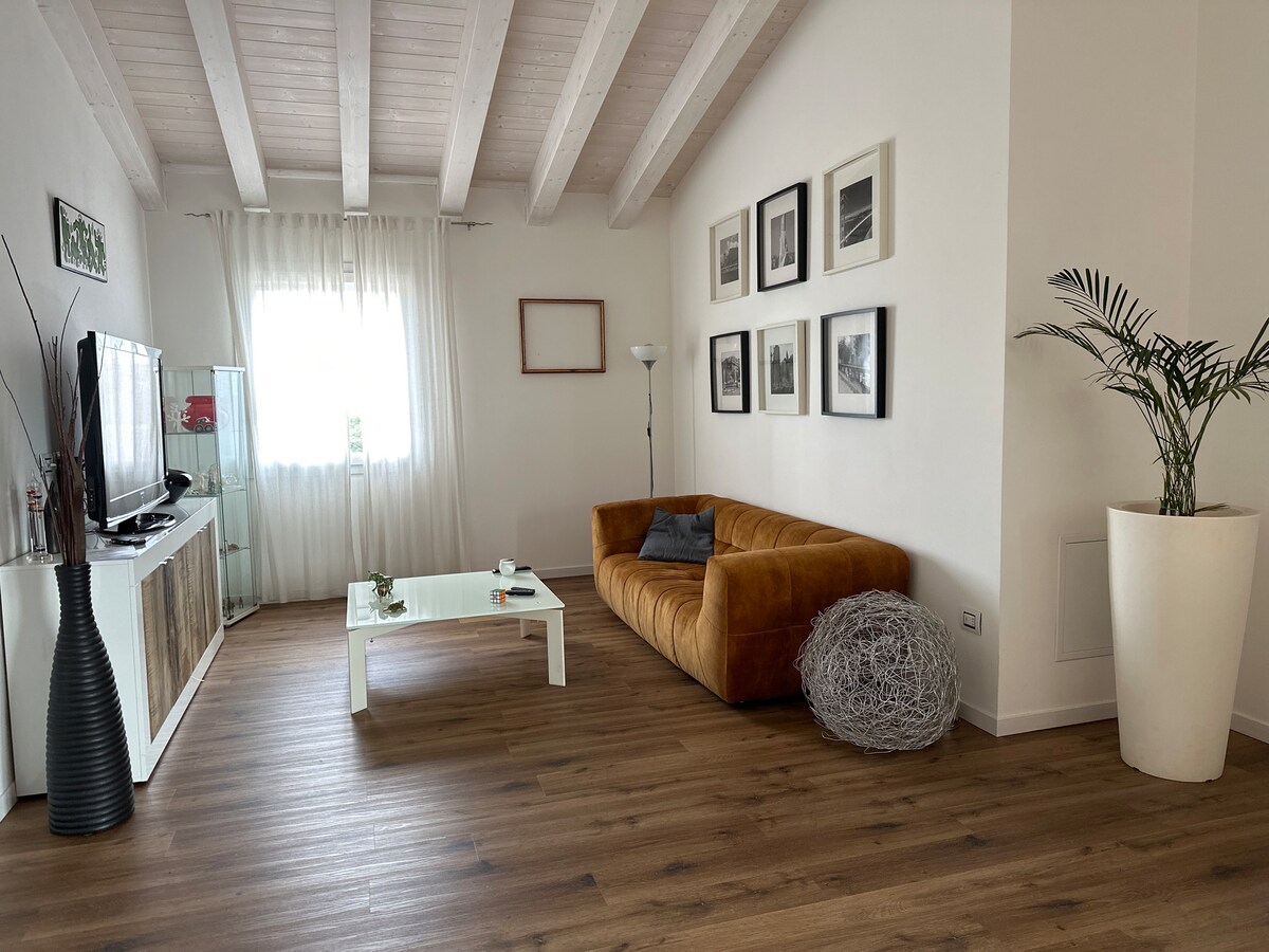 I hjertet av den historiske byen, i en renovert bygning: 2. etasje, godt utstyrt (fiber-WLAN), sentralt klimaanlegg, to soverom, lys og rolig sidegate fra hovedpromenaden, ca. 500 m fra busser eller båter til Venezia (60/90 minutter til Markusplassen og direkte buss til/fra Venezia lufthavn). Garasje for leide sykler. Leiligheten er desinfisert. Jeg eier også en stor leilighet (fjerde etasje) med terrasse ved hovedgaten (best for seks, men opptil åtte personer, to bad).