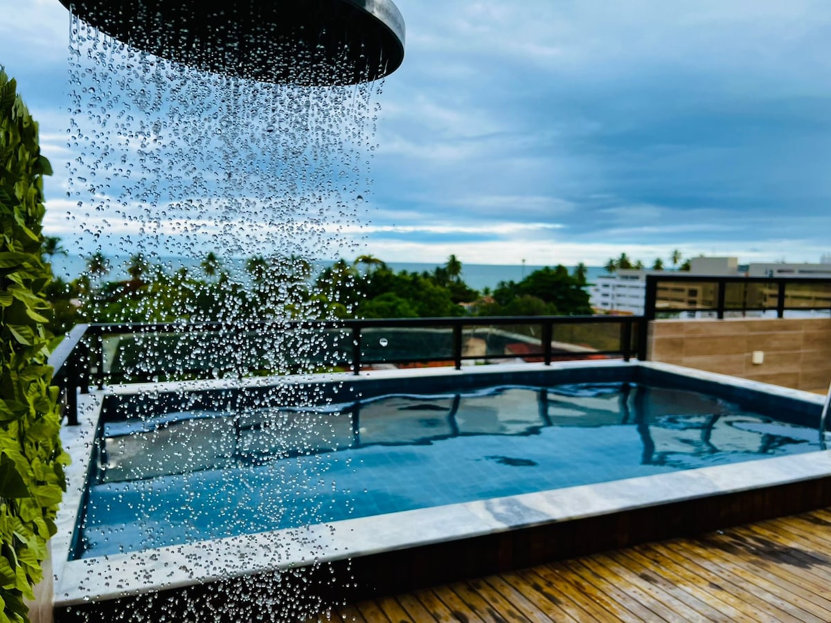 NY leilighet designet for din beste opplevelse på en av de vakreste strendene i João Pessoa. VI ER IKKE EN HOTELLKJEDE! Vi har en balkong med utsikt over Cabo Branco-stranden, og du vil ha tilgang til: – sengetøy og håndklær - Wi-Fi - Smart-TV – komplett kjøkken (minibar, komfyr, mikrobølgeovn, espressomaskin, smørbrødmaskin, tallerkener, glass, bestikk osv.) - Klimaanlegg - fellesområde (svømmebasseng, restaurant, vaskeri, garasje, ismaskin) - 24-timers resepsjon