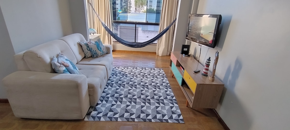 Ligger på hovedgaten i byen, 300 meter fra Porto da Barra med all slags handel i selveierleiligheten (supermarked, pizzeria, apotek, bakeri, skjønnhetssalong). Smart-TV i stuen og på soverommet med gratis tilgang til de viktigste strømmetjenestene (Netflix, Amazon Prime, Globoplay, Youtube). Utstyrt med sengetøy, bord, bad og kjøkkenutstyr. Stue, soverom (én dobbeltseng og to enkeltsenger), kjøkken og balkong med grill og dusj.