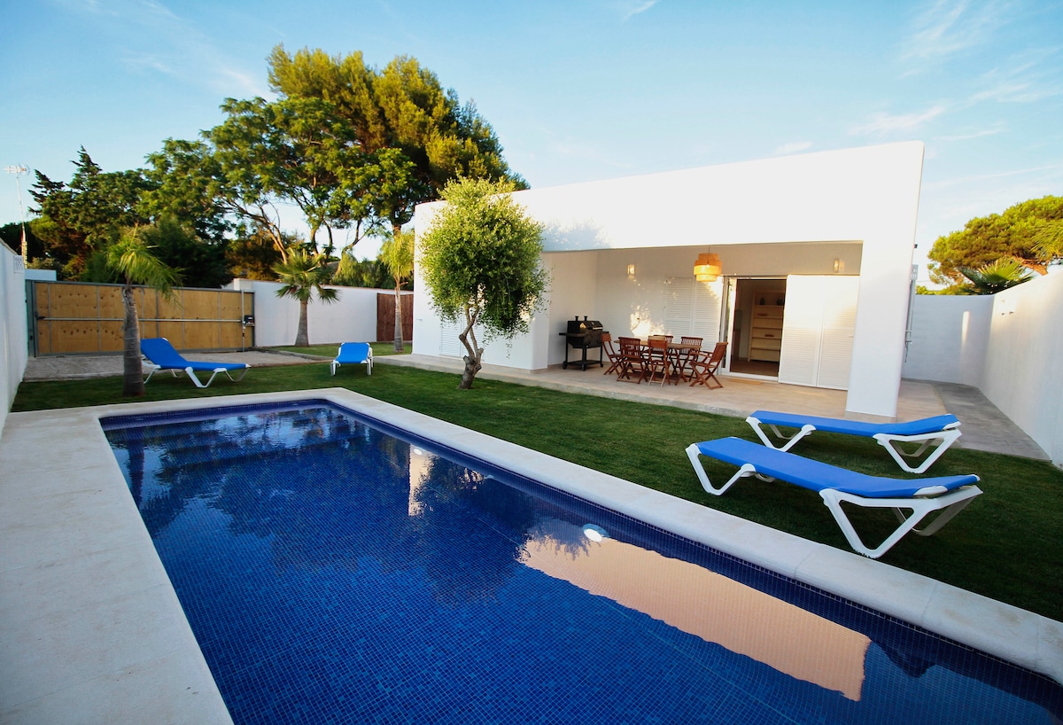 Et helt nytt hus som ligger i et veldig rolig boligområde i Chiclana de la Frontera (Poblado de Sancti Petri) med alt i nærheten. Det er tre restauranter bare to minutters gange unna (italiensk, spansk, argentinsk mat). Stranden ligger 20 minutters gange unna og bare 5 minutters kjøring unna, noe som betyr at beliggenheten virkelig er ideell. Vi kan tilby deg tre romslige soverom, to bad, svømmebasseng, solsenger, trådløst nettverk, klimaanlegg og et veldig godt utstyrt kjøkken. Klar til å nytes.