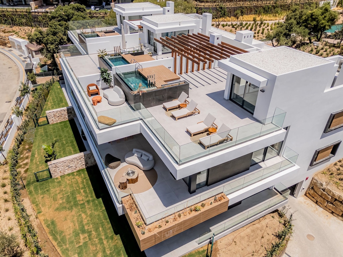 Helt ny bygning. Helt nytt alt. Designert toppleilighet. Luksuriøs og rolig beliggenhet. Strand og golf i nærheten. 142 kvm interiør. 149 kvm eksteriør. Fantastisk takterrasse med havutsikt og et lite privat basseng. Et stort, vakkert basseng. En annen koselig terrasse. To soverom og ett gjestesoverom. To bad. Alle fasilitetene vi kunne tenke oss. Upåklagelig rent. Upåklagelig administrert. Ideell for maks fire voksne og to barn. Kun femstjerners anmeldelser. Gjestene våre elsker det. Kom og bli en stund?