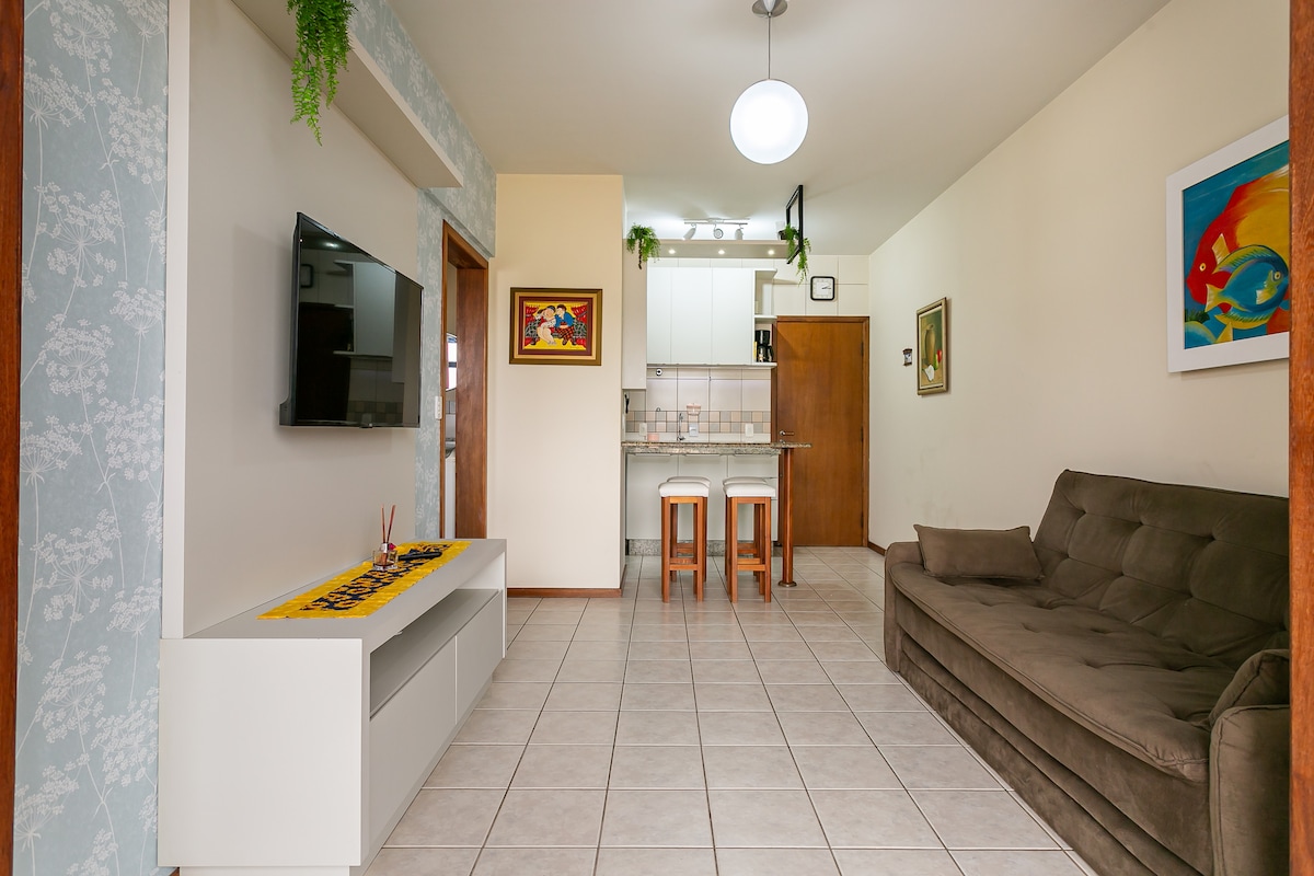 Nydelig leilighet, møblert, i den beste leiligheten med basseng i sør for landet - Marine Home Resort 1 soverom med suite med 1 dobbeltseng og 1 enkeltseng, 1 bad, kjøkken, stue to rom, serviceområde, balkong med grill. I stuen er det 1 superkomfortabel sovesofa og en oppblåsbar madrass. ROM MED KLIMAANLEGG. Trådløst nettverk, smart-TV med NETFLIX PÅ TO TV-ER (IPTV) Dekket garasje for 1 bil Andelsleilighet 100 meter fra Cachoeira-stranden. Det har et supermarked i første etg.