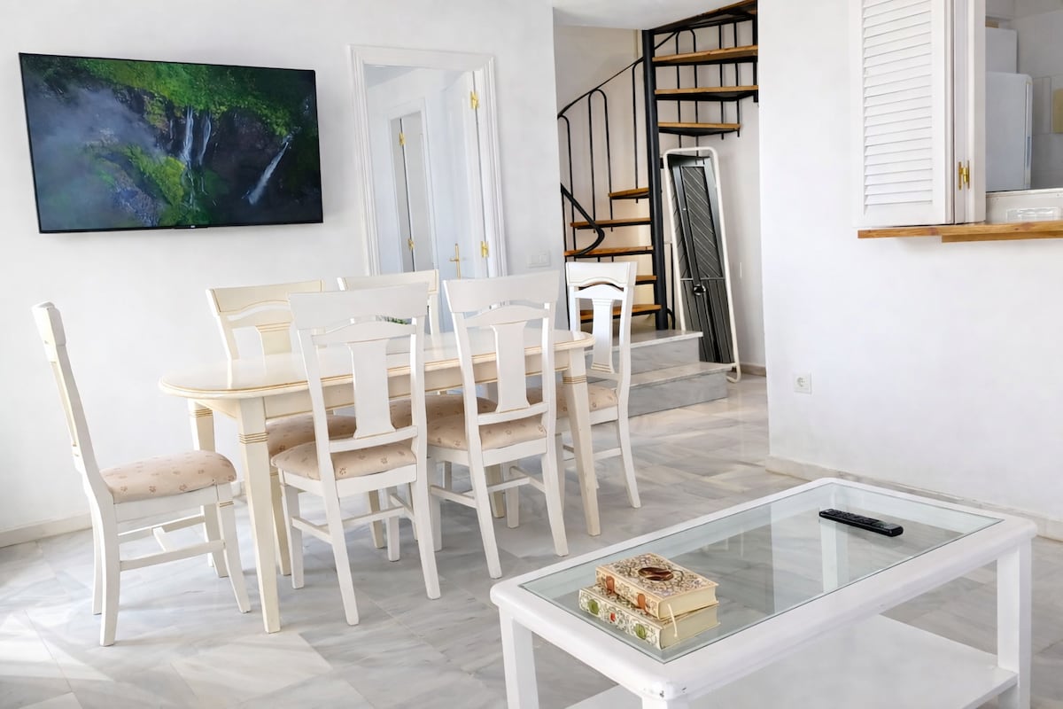 Dette elegante bostedet er perfekt for gruppeturer. Familievennlig og svært godt plassert i hjertet av marinaen i Sotogrande. Fem minutters spasertur til restaurantene og stranden. Hvis du må jobbe, har du høyhastighets trådløst nettverk. Alt kjøkkenutstyr, Nespresso-kaffemaskin, vaskemaskin, strykejern, hårføner, håndklær og renset sengetøy. Du finner den mest fantastiske lukkede terrassen, perfekt for en sammenkomst eller boklesing. Den tilbyr to underjordiske parkeringsplasser.