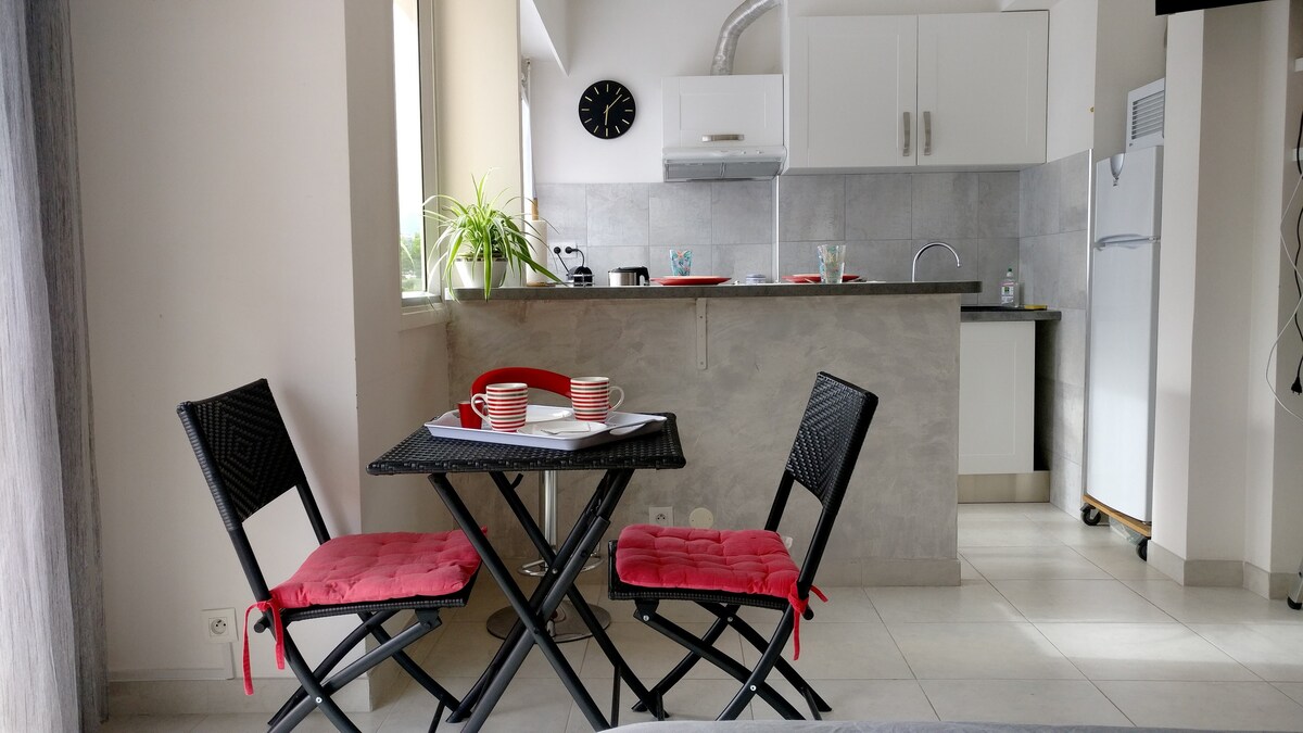 Fullt utstyrt 2-roms leilighet som ligger på Villeneuve-Loubet-stranden, mellom Nice og Cannes, i et trygt og rolig boligområde. Boligen inkluderer en privat parkeringsplass i en felles garasje i kjelleren inne i boligen. Bare ti meter fra strendene, havnen i Marinas Baie des Anges, restauranter og fasiliteter (supermarked 100 m), et ideelt sted å slappe av og ha det gøy med familie, venner eller kjæreste.