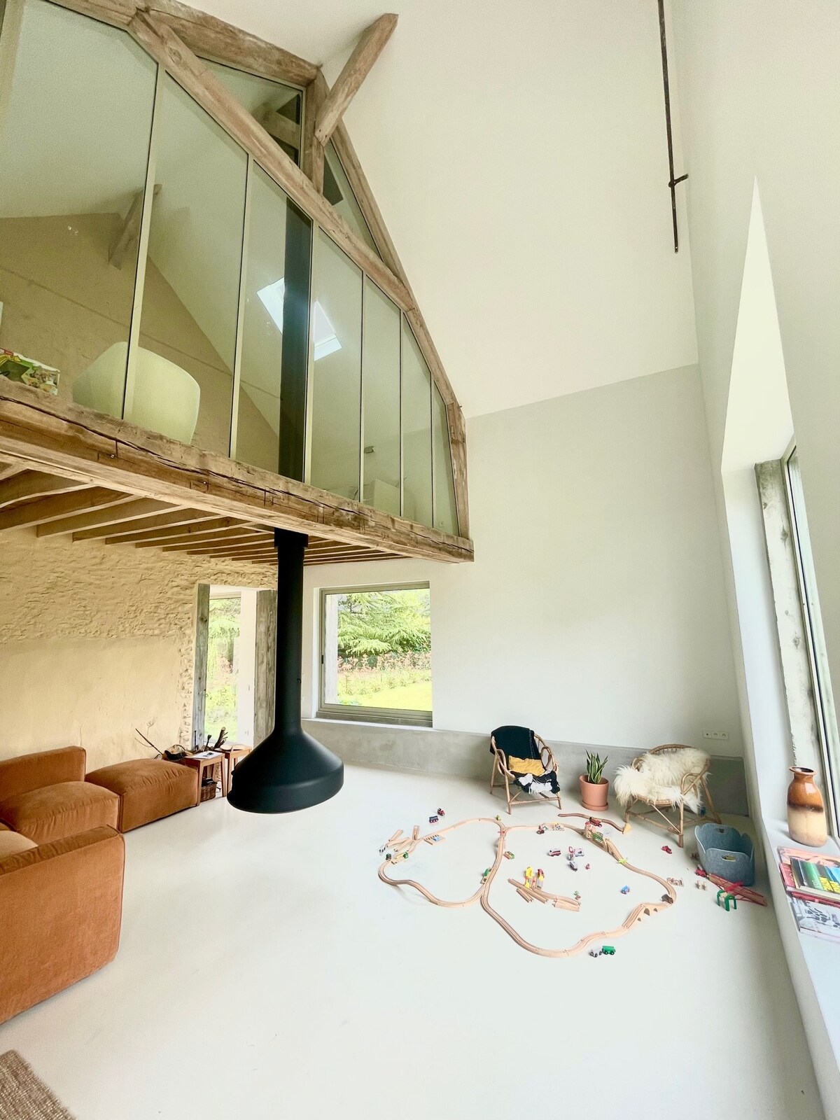 Perfekt for å møte familie eller venner, to totalrenoverte gjestehus i en vakker grønn park venter på deg. "Mezzanine-suiten" har to dobbeltsenger, et fullt utstyrt kjøkken og et stort bord for 8 personer, "atelier-hytta" ligger 50 meter unna og har plass til 4 voksne og 1 barn. Stor hage, grill og brødovn. Eventuelt kan du få servert en frokostbuffet eller brunsj (reserveres på forhånd, pris på forespørsel).