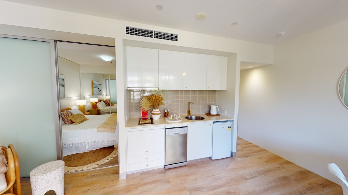 Denne vakkert presenterte, stilige leiligheten ligger i tredje etasje i Harbour Lights-kompleksets hotellfløy. Flatskjerm-TV til stuen og soverommet, moderne funksjonelt kjøkken med alle apparatene du trenger, inkludert oppvaskmaskin. Kingsize-seng på soverommet pluss komfortabel sovesofa i stuen hvis nødvendig/ønsket. Fantastisk utsikt, privatliv, komfort og en helt førsteklasses beliggenhet med alle de beste restaurantene, kaféene, Reef Terminal og butikkene innenfor en armslengde.