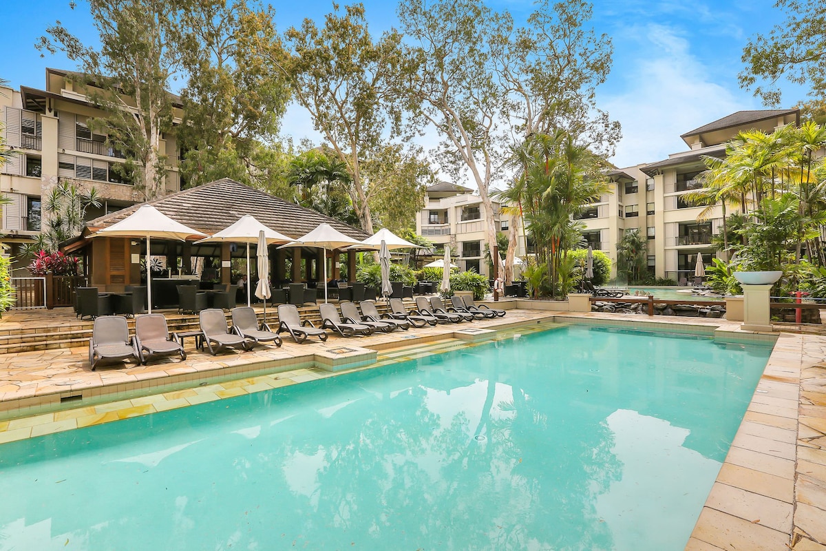 *Superspesial 2 soverom 2 bad leilighet** *Gratis Wi-Fi *Valg av enten 2 x king eller 1 king og 2 singler *Gratis parkering på stedet *5 minutters spasertur til Palm cove beach *Fullt selvstendig, kjøkken, vaskeri, koketopp, stekeovn oppvaskmaskin, tørketrommel *Stor og romslig åpen planløsning *bruk av 4 bassenger inkludert 50 meter svømmebasseng og barnevennlig basseng * Turskranke på stedet *frodig tropisk tomt på 2,5 hektar * BBQ på stedet Merk at leiligheten ikke er betjent under oppholdet.