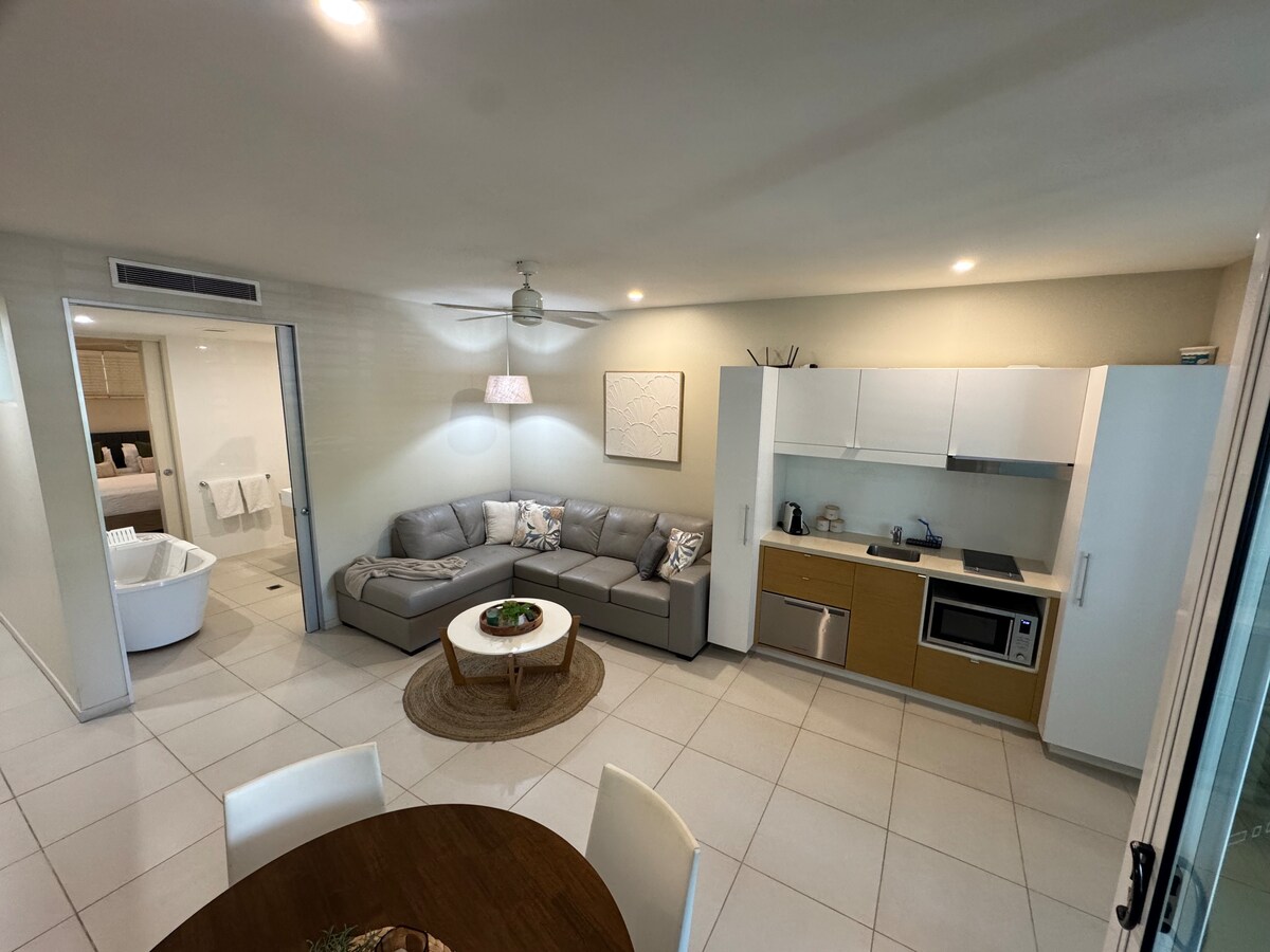 Peppers 5-stjerners, luksuriøs eiendom ved stranden i hjertet av Palm Cove. Første etasje med tilgang til bassengport Plass til to personer. Luksus. Klimaanlegg, ekstra stor TV Austar og gratis trådløst nettverk Ensuite med dusj og toalett. Fullt utstyrt kjøkkenkrok med kjøleskap og mikrobølgeovn Vaskemaskin og tørketrommel Privat balkong med boblebad. Bokstavelig talt noen skritt unna den vakre stranden, hvor du kan ta en strand spasertur eller bla gjennom utvalget av fantastiske butikker og restauranter Virkelig fantastiske barn ikke tillatt