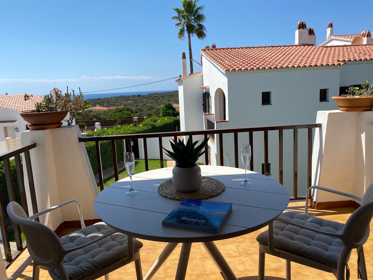 Nydelig havutsikt. Terrasse på Menorca