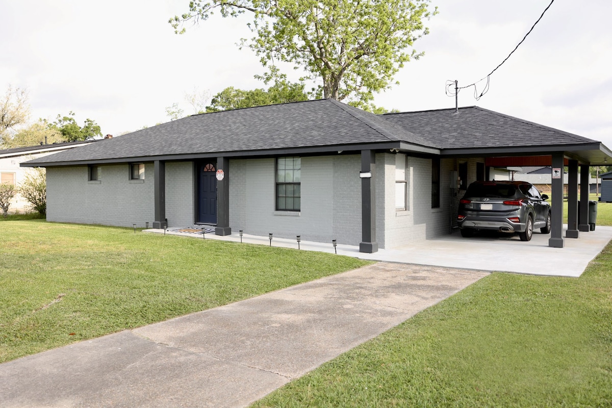 Visiting family or working in the area we have you covered at this quite country home that is fully HANDICAPPED accessible, smoke free and DOG friendly. Sleeps up to 5 max, couch folds out, perfect for kids. Close to the Frasch ballfields, golf course and SPAR waterpark. Located just a short (10-20)drive to the casino's, restaurants and parks. Covered parking and patio with plenty of seating. Cajun Country Cabin, your home away from home!