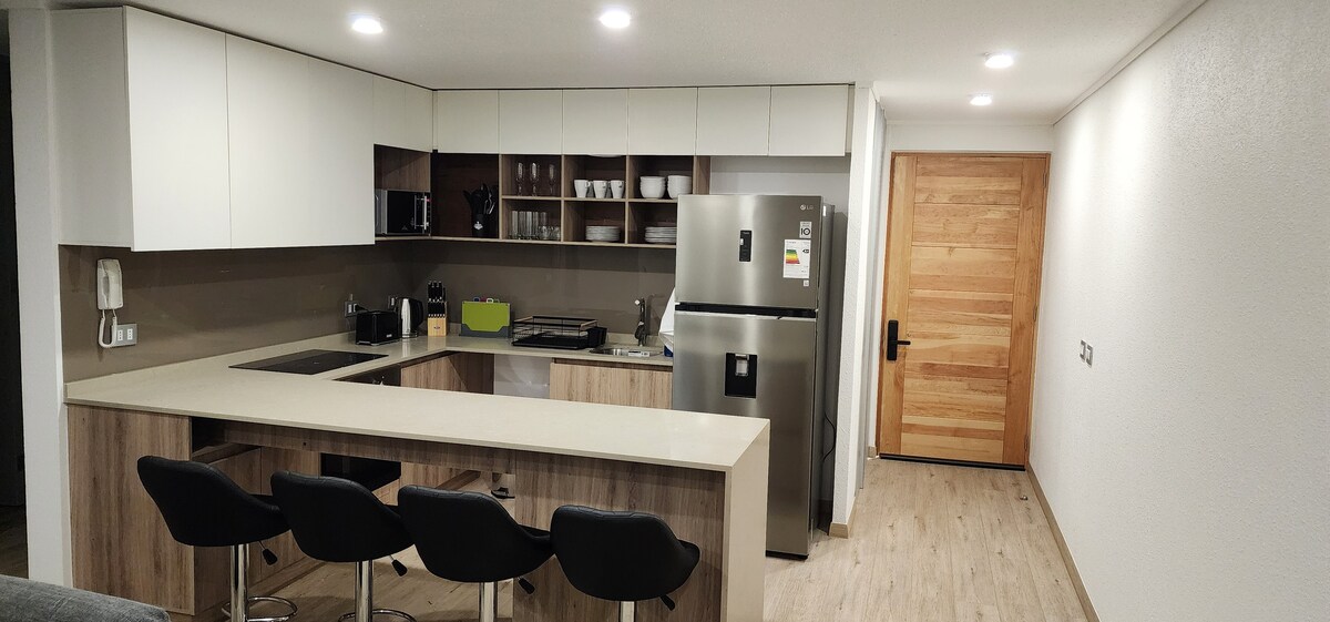 Leiligheten har en eksklusiv og kvalitets innredning. Det ligger noen skritt fra sentrum, Caldera-plassen. Det ligger 10 minutter med bil fra Bahía Inglesa. 15 minutter med bil fra Atacama Desert Airport. I gangavstand fra busstasjonen.