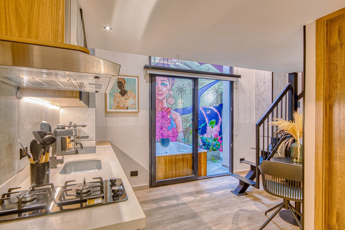 ** UNIDAD EXCLUSIVA EN CORAZÓN DEL BARRIO GRANADA ** Este lujoso dúplex de 28m² (17m² + 11m²) con jacuzzi privado, esta ubicado en el corazón cultural y gastronómico de Cali (BARRIO GRANADA), en el edificio Constantino (Joya arquitectónica de Cali). Es un edificio inteligente, el acceso al edificio y al apartamento es 100% autónomo. Disfruta de amenidades como coworking, gimnasio funcional, jacuzzi, turco y más. En el primer piso esta la tienda de Café Quindío, el mejor café de Colombia.