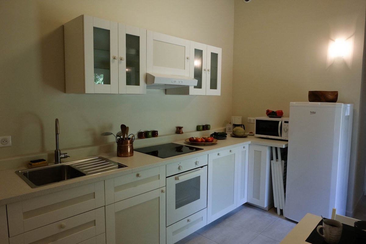 Møblert turistanlegg klassifisert 4 *: 65m2 i grønne omgivelser. Den private terrassen har utsikt over en skog av eik og furu med utsikt over åsene. Et soverom med en dobbeltseng (hotellkvalitet) og et tilstøtende bad + et fullt utstyrt åpent kjøkken med utsikt over en stue med 2 enkeltsenger. Komplett utstyr, svømmebasseng delt med eierne Vi vil gjerne dele gode adresser i området hvis reisende ønsker det.