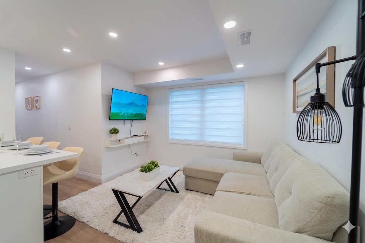Velkommen til den luksuriøse, fullt møblerte leiligheten vår i historiske Ancaster. Denne romslige og stilige enheten har moderne fasiliteter og smakfull innredning, noe som skaper en komfortabel og innbydende atmosfære. Med et fullt utstyrt kjøkken og en koselig stue vil du føle deg som hjemme. Nyt bekvemmeligheten av høyhastighets internett, en flatskjerm-TV og et eget arbeidsområde. Den ligger i et førsteklasses nabolag med enkel tilgang til shopping, spisesteder og offentlig transport.