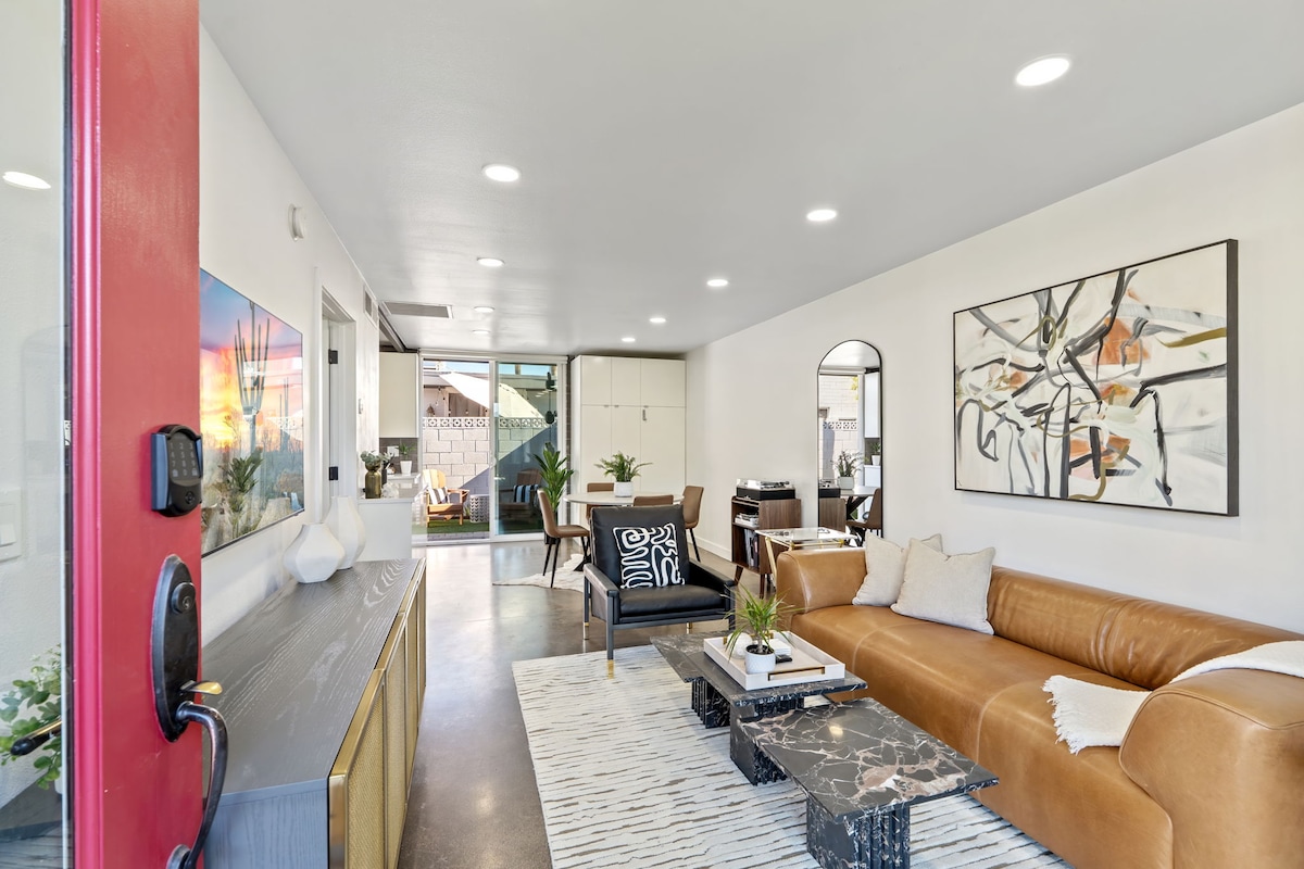 Stedet: Velkommen til Palm Paradise, ditt avslappende tilfluktssted i hjertet av gamlebyen Scottsdale. Denne leiligheten ble renovert i oktober 2024 og blander stilig ørken-boho-design med alle hjemmets bekvemmeligheter, noe som skaper et sted som er både vakkert og funksjonelt. Slapp av på den koselige grønne kordfløyelen, perfekt for en lur, eller gå ut på den private balkongen for å se den spektakulære utsikten over Camelback Mountain. Gå inn i det rolige soverommet med en kingsize-seng og sengetøy av høy kvalitet.