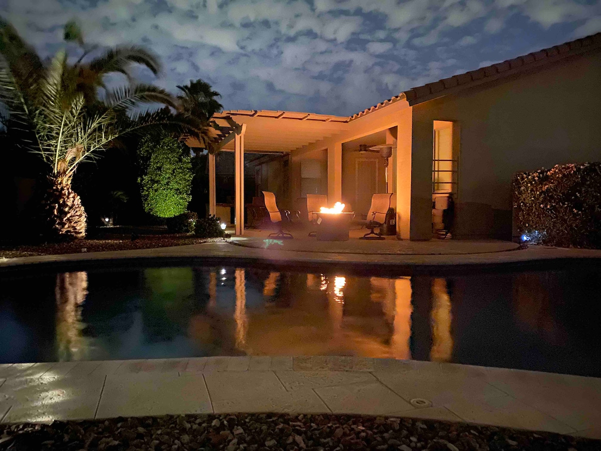 Velkommen til vår splitter nye casita, som ligger mindre enn 2 miles fra State Farm Stadium, Desert Diamond Arena og bare 15 miles fra flyplassen. Vår casita er festet til hovedhjemmet, men har sin egen smartlåsinngang som sikrer fullstendig privatliv for oppholdet ditt. Det har et separat boareal. Nyt en herlig enkeltkaffe/te om morgenen. Familien vår i hovedhuset har en Chi-doodle.