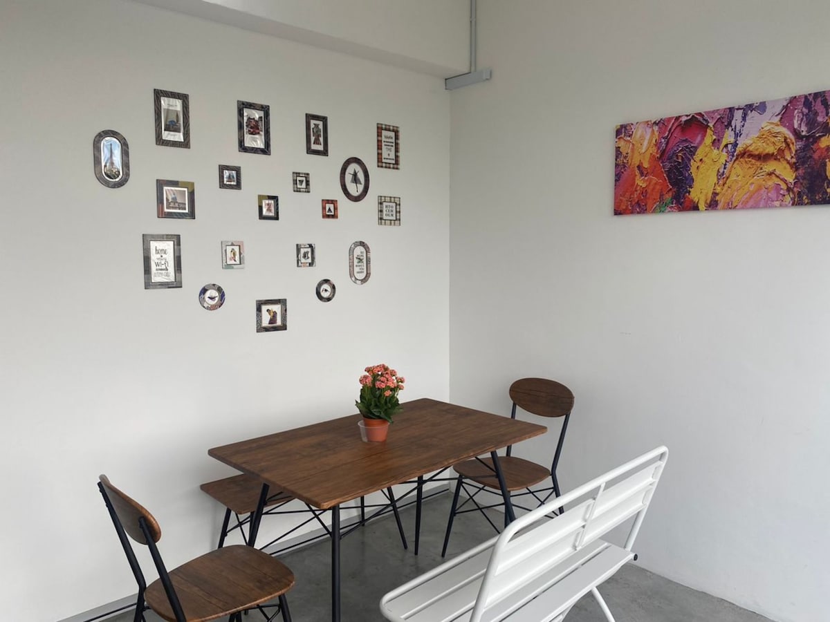 Les før du bestiller. 😊 Vårt koselige fellesområde ligger i andre og tredje etasje med vakker utsikt. Vær oppmerksom på at det ikke er heis, så det er ikke egnet for eldre gjester, vordende mødre eller personer med bevegelsesproblemer. ❗️Ingen barn/spedbarn tillatt. ❗️Maksimalt rombelegg håndheves strengt – ekstra gjester vil føre til nektet innsjekking uten refusjon. Ingen ekstra senger er tilgjengelig. Bestill et annet rom for ekstra gjester. ❗️Dette er et delt sted, ingen dampbåt, stinkende tofu eller durianer tillatt.