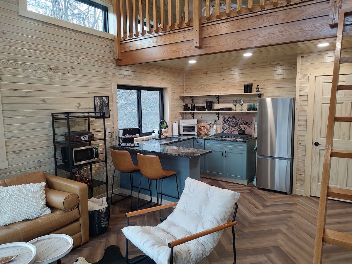 Innisfree Farms' «Big Tiny» har komfort i full størrelse og vakre omgivelser på vår 70 hektar store gård. Finn tilbake til naturen uten å gi opp varme dusjer og aircondition. Det perfekte landet for å koble fra (selv om TV og trådløst nettverk er tilgjengelig), lage mat og slappe av ved peisen. En kombinasjon av rustikke naturomgivelser og velfortjente bekvemmeligheter. Dette lille huset har flyttet til et sted ved innsjøen på vår mindre dam – AWD- eller 4WD-kjøretøy vil være nødvendig om vinteren i tilfelle betydelig snø!
