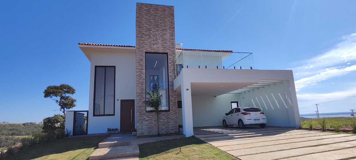 Basseng med foss. Tre soverom, hvorav to er en-suite. Den har plass til totalt 14 personer, 10 i senger, 2 i sovesofa og 2 i madrasser. Gate med asfalt Klubber betalte i gjennomsnitt R$ 70 per person Den ligger i Marina-sektoren, i nærheten av demningen ved siden av adkomstrampen, parken ved vannkanten og Marina-klubben. Kjøkken utstyrt fra moderne apparater til bestikk og glass Filtrer med isvann. Innsjekkings-/utsjekkingsfleks Klimaanlegg i alle rom Svømmebasseng, grill og vedovn Smart-TV-er