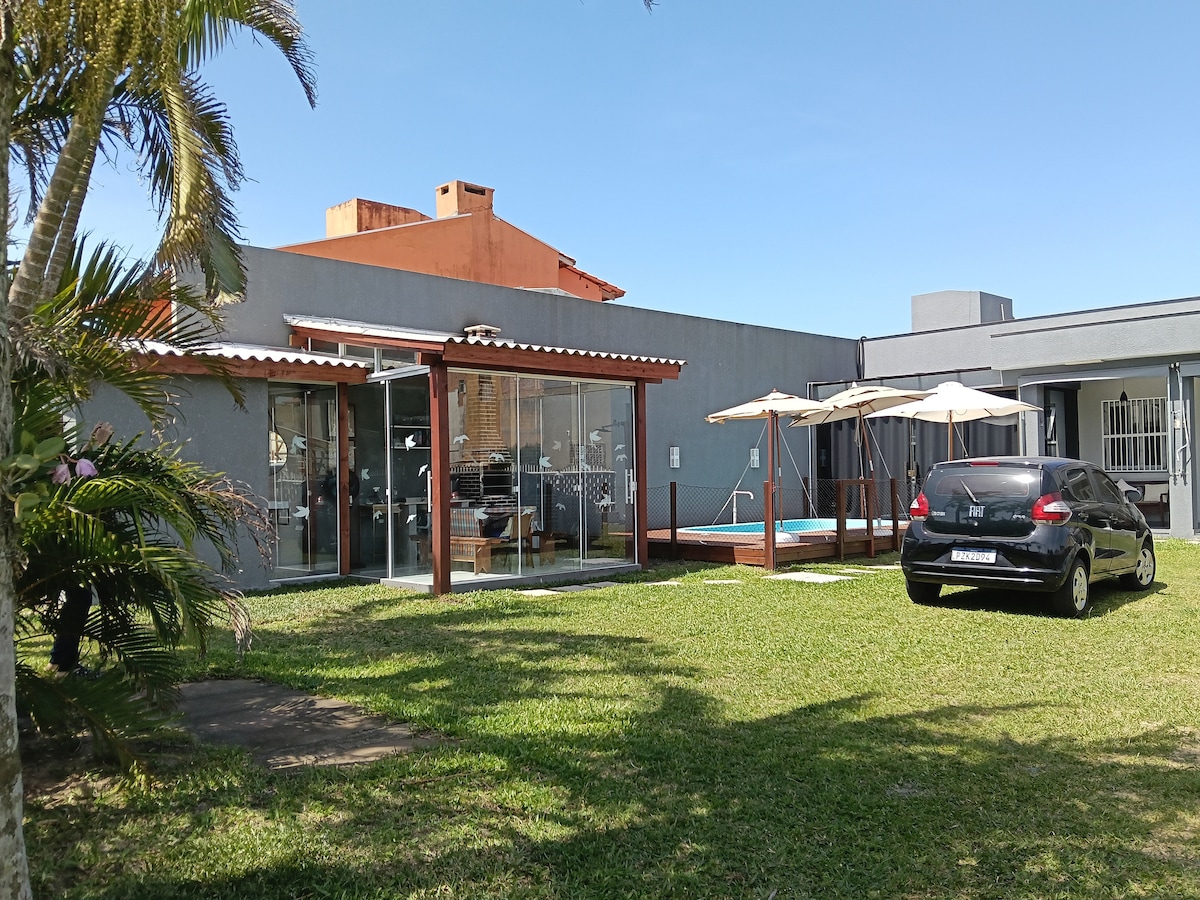 Hus i bungalowstil med basseng i Capão da Canoa.