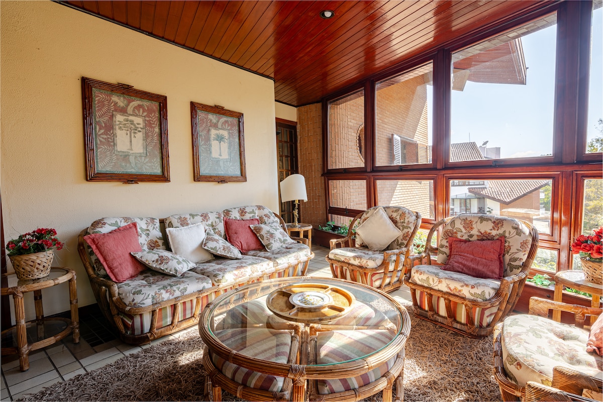 Stor leilighet i sentrum av Campos do Jordão, 5 minutters gange fra den berømte Baden Baden. Ideell for grupper og familier. Komplett leilighet med sengetøy, badetøy, komplett kjøkken og vaskerom, stue med peis, varmeapparater og tepper på soverommene og mye komfort i nærheten av alt Campos do Jordão tilbyr turister. Garasje for to biler i et kondominium med total sikkerhet.
