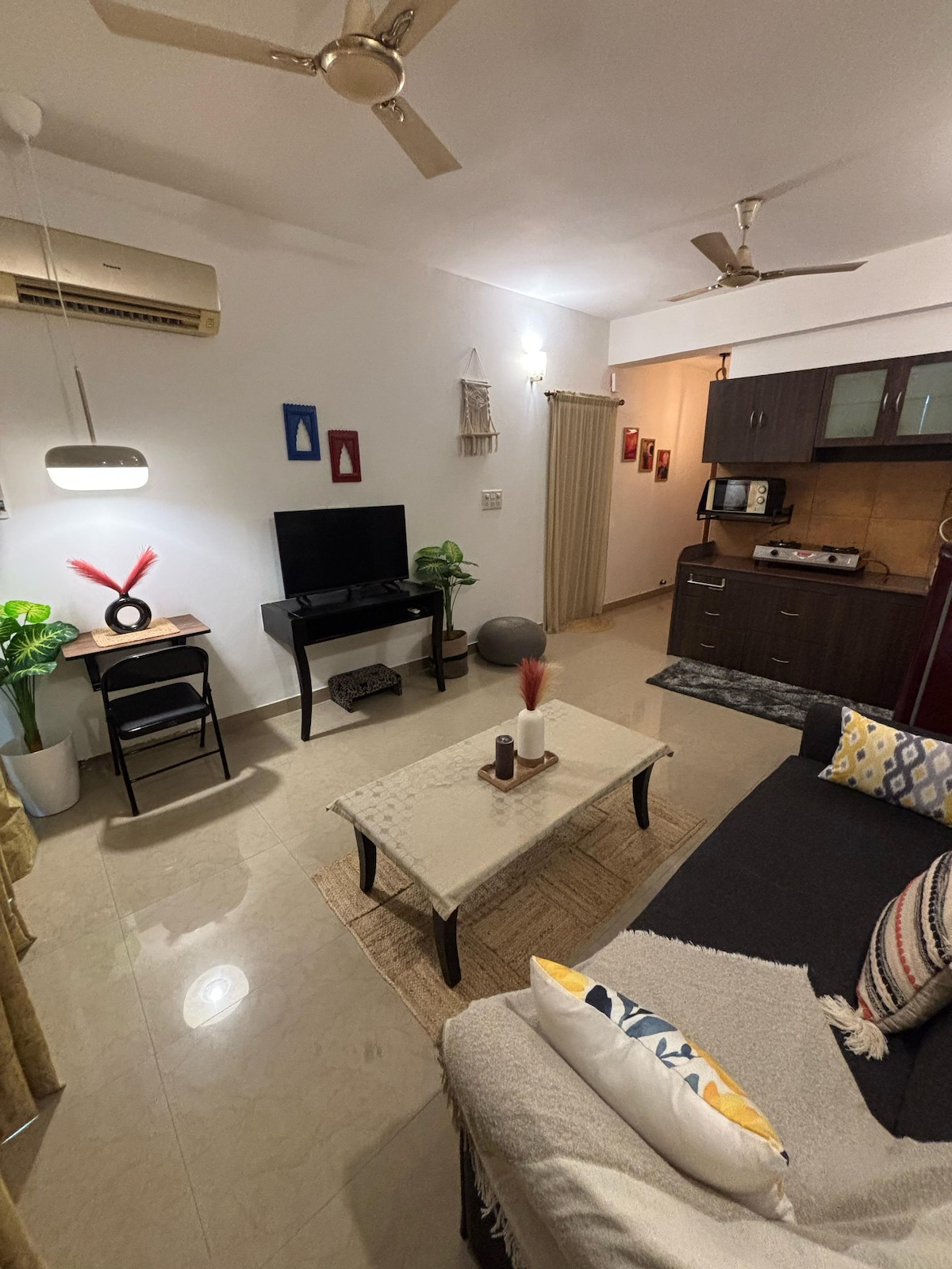 “Close to the sun-kissed shores of Palolem Beach, this breezy apartment is perfect for a relaxed getaway. Nestled in a gated community, it has cool modern décor, wifi, a fully equipped kitchen, housekeeping & power backup. With grocery stores & vibrant local markets just around the corner, it’s an ideal spot for your Airbnb stay. Whether you’re here to chill or explore, we have everything you need for a carefree, comfy holiday. “
