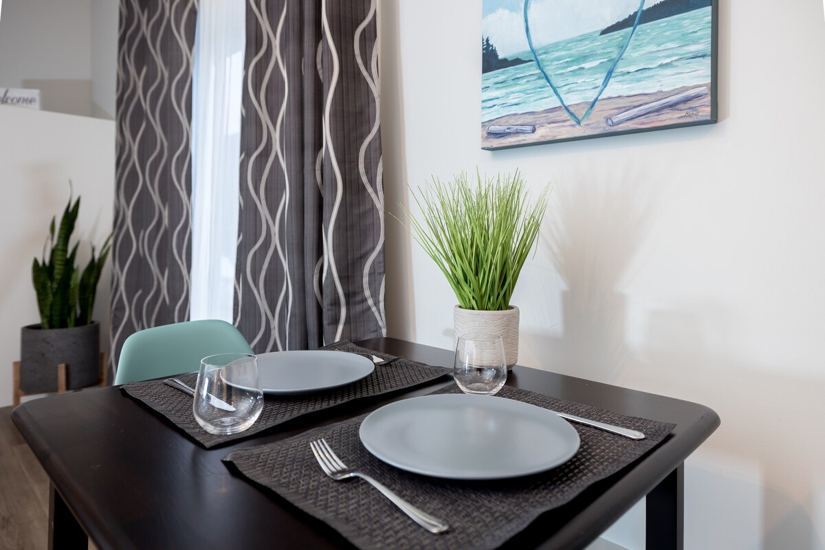 Vi er ditt hjem hjemmefra i hjertet av Niagara Falls. Kom og bo hos oss på The Cannery Lofts Niagara, og kjenn energien i de splitter nye loftsrommene våre, som ligger i et historisk, gjenvunnet lager fra 1900-tallet. Med 15 fots takhøyde, eksponerte betongvegger og moderne og romslige bad. Denne enheten har et kjøkken med et kjøleskap i full størrelse, konveksjonsmikrobølgeovn og induksjonstopp. Vi tilbyr rene håndklær og gratis toalettartikler.