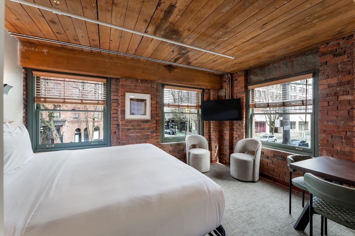 Et studio med king size-seng på Block House, et boutique-leilighetshotell som ligger i en kulturminnebygning i Gastown. Har synlige mursteiner, originale tregulv, en bar med minikjøleskap, vask og benkeplate, eget bad på rommet med fristående dusj, mykt sengetøy, badekåper og badeprodukter fra Tallu. Felles vaskerom er tilgjengelig på stedet.