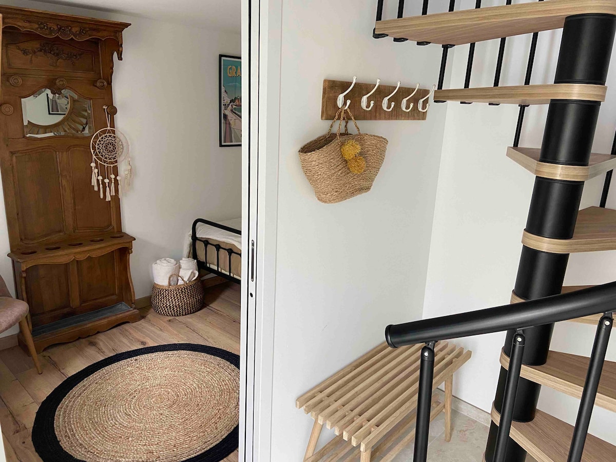 4,95 av 5 gjennomsnittlige vurderinger, 92 anmeldelserRolig studio, i andre etasje og med bratt trapp