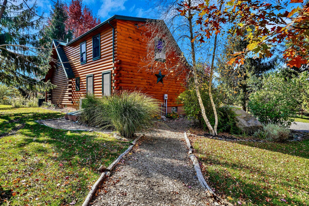 A stunning log home away from home nestled on a secluded 4 acres of land in the picturesque town of Dansville. Perfect for a family getaway, girls trip, and/or weekly / monthly rental. Soak in the hot tub enjoying the views , enjoy the outside area and a cozy fire in the evening .Hunting, hiking, skiing and Stonybrook Park, minutes away. The charming village of Dansville is around the corner . Kids can enjoy WIFI for video games , play board games , arcade games or explore the wild and nature.