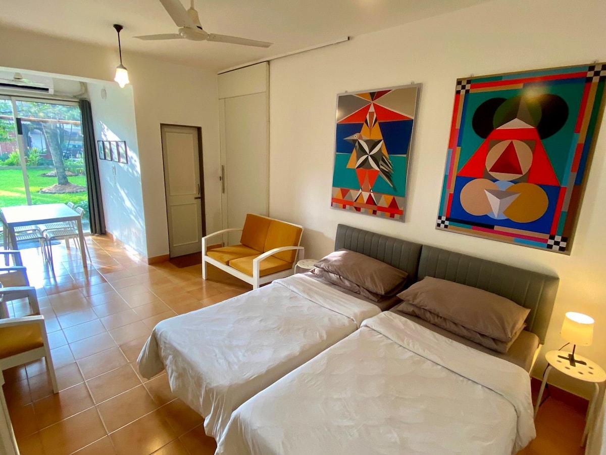 Kanso by Earthen Window er en rolig ettromsleilighet i Siolim, formet rundt jord, lys og privatliv. Interiøret er designet for langsomme morgener og uforhastede kvelder, og er utført med kalkvaskede vegger, myke mikrobetonggulv og gjennomtenkte gjenstander som gir det en villalignende sjarm. Soverommet åpner seg til en PRIVAT HAGETERASSE og et avsidesliggende boblebad i mikrobetong med JACUZZI, begge med utsikt over uavbrutt grønn skog. Felles fasiliteter inkluderer basseng, badstue, treningssenter og døgnåpen sikkerhet.