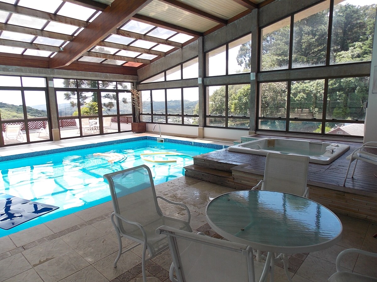 Opplev unike øyeblikk i Serra Gaúcha! Bo i en komplett leilighet med strukturen til et hotell og komforten av et hjem. Peis, oppvarmet basseng, badstue, lekerom, treningssenter med mer. Leiligheten vår ligger på et rolig sted, bare 700 meter fra steinkatedralen (postkort/sentrum av Canela). Den ligger på en skogkledd boliggate, med enkel tilgang til kaféer, restauranter og butikker. Ved siden av det grønne området, kontakt med naturen. Frokostservering (ekstra kostnad) levert til leiligheten.