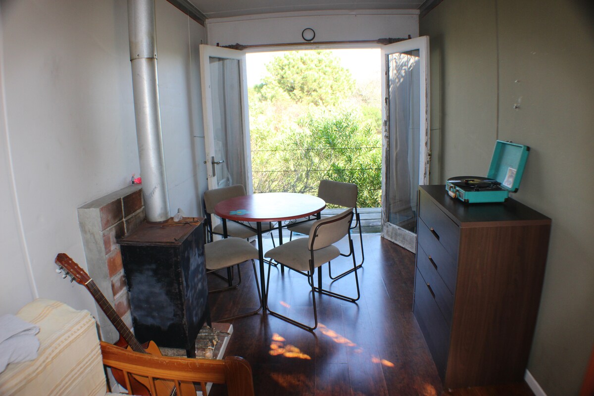 Sov som aldri før i dette akklimatiserte containerhuset med alle fasiliteter, som ligger i en inngjerdet gate, med en balkong med utsikt over trærne i et kommunalt reservat som strekker seg til stranden, en scene til de beste solnedgangene i Canelones. Ideell for å slappe av alene eller som et par, for eksempel helgetur, ferie eller for å trekke seg tilbake for å jobbe uten distraksjoner, litt over en time fra Montevideo og mindre enn 200 meter fra sjøen.