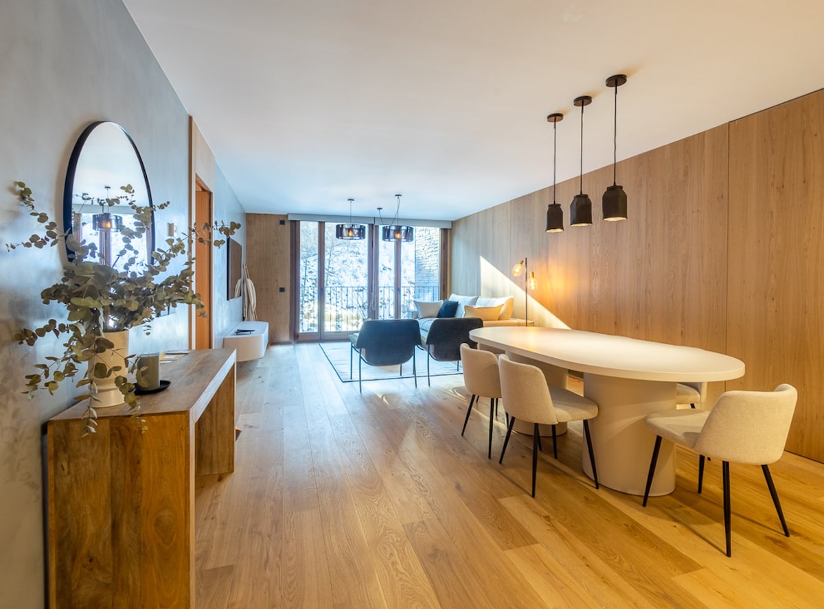 🏔️ Fem⭐ luksusleiligheter i El Tarter | ett minutts gange til skiheisen | basseng og badstue Nyt en 5-stjerners leilighet i El Tarter, vurdert av Andorra-regjeringen. Tre soverom (ett ensuite), to bad, moderne design, to private parkeringsplasser, sovesofa🛋️, høyhastighets trådløst nettverk📶. Bare ett minutts spasertur til Grandvalira-skiheisen🎿. Egenskaper: individuelle termostater🌡️, fullt utstyrt kjøkken🍳, basseng🏊♂️, badstue🧖♀️, hammam, treningsstudio. Plass til seks voksne + to barn. Barneseng på forespørsel.