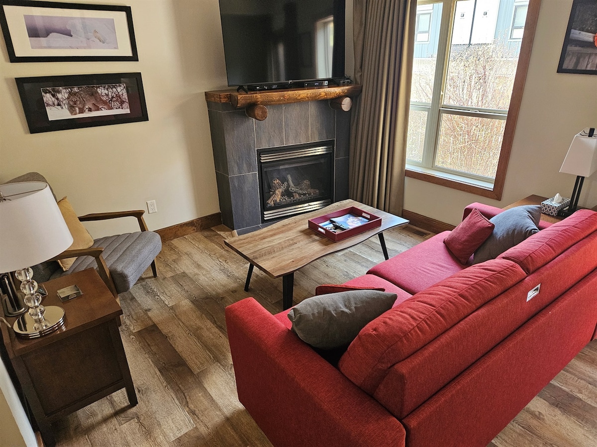 *Ingen gebyrer* Vi betaler Airbnbs tjenestegebyr på 15,5 %. Velkommen til vårt feriested i fjellet i hjertet av Canmore! Enheten vår tilbyr en perfekt blanding av moderne komfort og naturens ro. Moderne skandinaviske møbler møter varmen fra naturinspirert innredning. Stuen og kjøkkenet har fjellutsikt, og beliggenheten er gangavstand til alt det du trenger. Bestill oppholdet ditt på vårt familievennlige feriested i fjellet og skap varige minner midt i Canmore. Velkommen hjem!