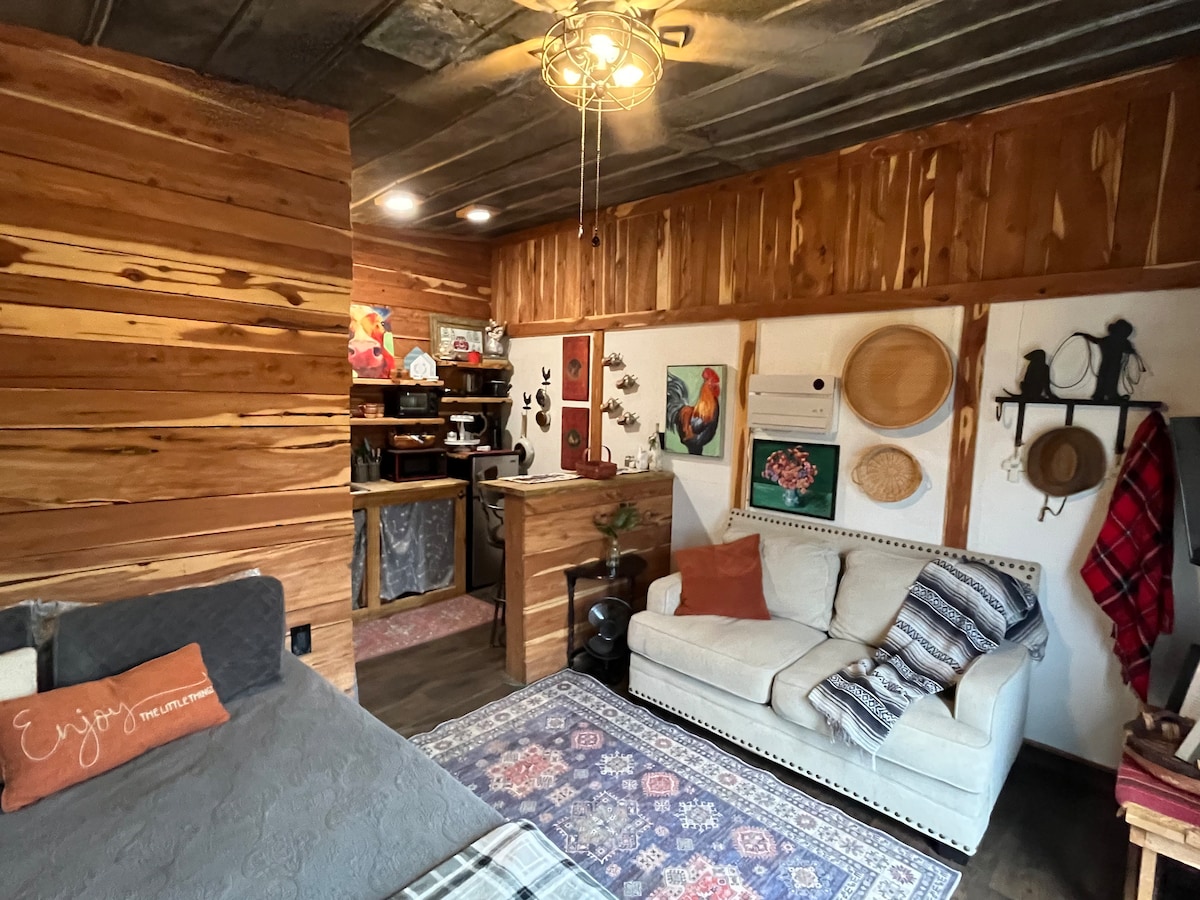Den rustikke, lille gjestesuiten er 175 kvadratfot og ligger i en del av låven vår, som er kledd med sedertre. Det er ikke fancy, men det er koselig. Solnedgangene og soloppgangene er fantastiske, og du kan se stjerner uten lysene i byen. Slapp av på gården. Les en bok, skriv musikk, lag mat på kullgrillen, streif rundt på gården eller bare gjør ingenting.