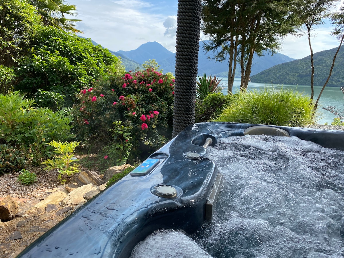 Det perfekte stedet for neste ferie. Beliggende ti minutter fra Havelock og 45 minutter fra Blenheim. Ved ankomst vil du være omgitt av innfødt busk og rikelig fugleliv. Kajakkene våre er til din bruk, og stranddekket vårt ligger to minutters gange ned til stranden. Et flott sted å slappe av i solen. Utendørs grillplass og spa-basseng setter scenen for din avslappende pause. Alle skyvedører åpner seg mot en stor terrasse, perfekt for å nyte den pittoreske utsikten. Fortøyningen vår kan være tilgjengelig.